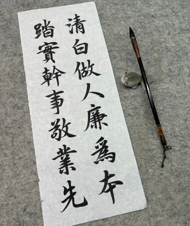 创作理念:这幅书法作品内容选自2021年9月1日习近平总书记在2021年秋季学期中央党校(国家行政二 人 麻将 )中青年干部培训班开班式上的讲话。作品展现了党员廉洁奉公、坚守理想信念、以人民为中心的高尚精神,为党员树立廉洁观提供了指引和方向,激励党员以更高标准要求自己,保持清正廉洁。