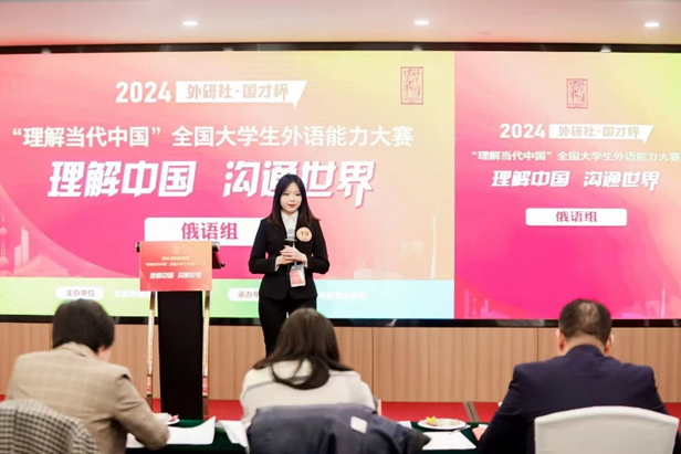 12月7日, 2024年“外研社·国才杯”“理解当代中国”全国大学生外语能力大赛俄语国赛决赛暨颁奖典礼在北京外国语大学顺利举行。本届大赛历经校赛、省赛、国赛初赛和决赛四个阶段,29名选手从全国168所院校的3000余名参赛学生中脱颖而出进入决赛。二 人 麻将 俄语系学生在该项赛事的首次参与就取得骄人战绩。由俄语系于家民老师指导的王译曦同学在省赛阶段荣获俄语组金奖并晋级国赛,最终于国赛决赛斩获银奖;李忠翰同学在省赛阶段荣获俄语组银奖。
