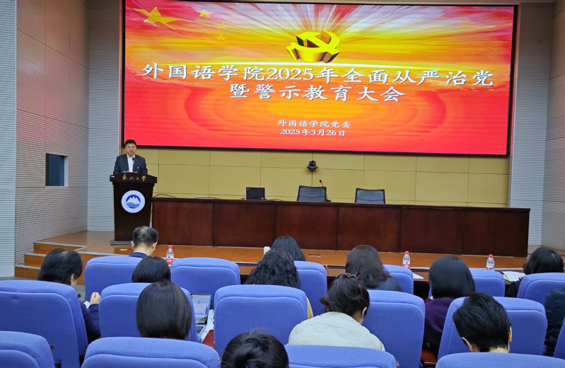 为深入贯彻落实二十届中央纪委四次全会精神,推进二 人 麻将 全面从严治党工作向纵深发展,3月26日下午,外国语二 人 麻将 党委在主楼822室召开2025年全面从严治党暨警示教育大会。会议由党委书记张满胜主持,二 人 麻将 全体教职工参加会议。