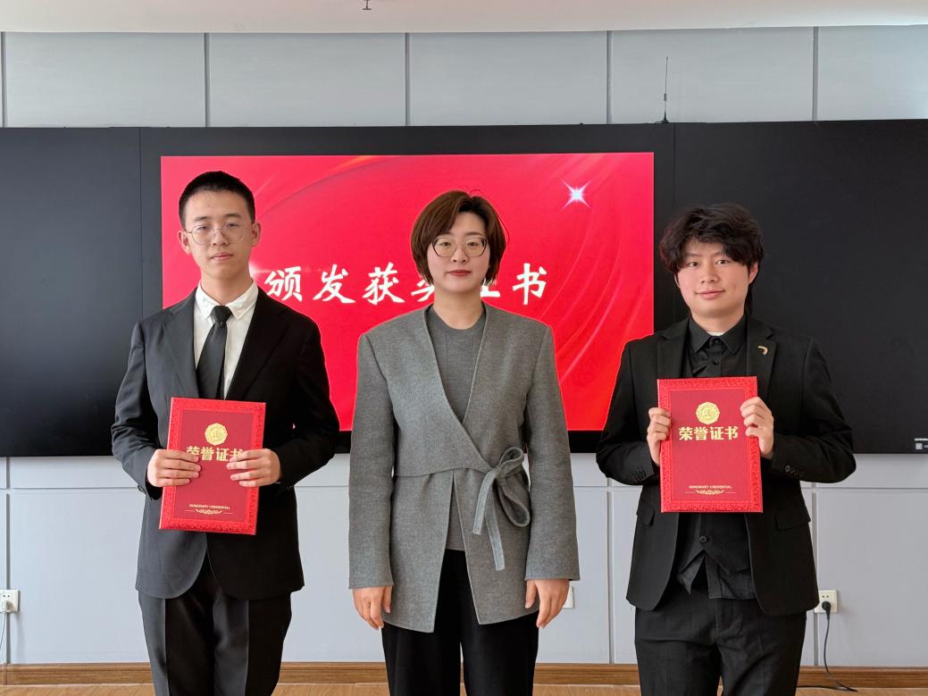 会上,严志刚宣读了获奖名单。刁彤、张满胜、展成、严志刚共同为获奖学生颁奖。