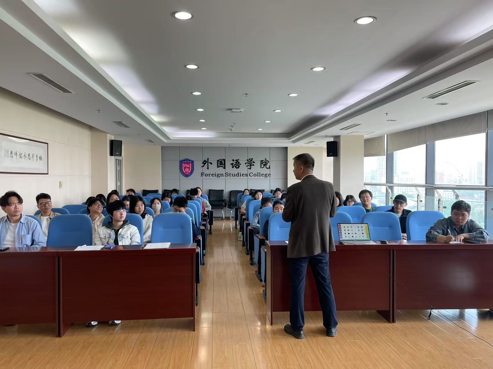 5月8日中午,二 人 麻将 党委书记张满胜在综合楼1008室开展了党的作风建设专题党课。来自外国语二 人 麻将 的近200名党员线上线下同步参与。