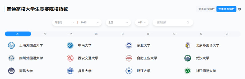 2:2025年普通高校大学生外语类竞赛指数A+高校名单