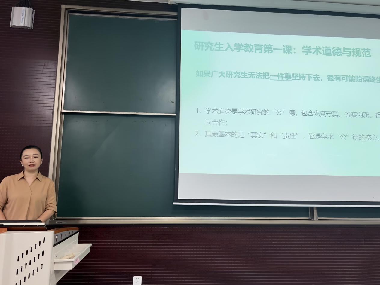 国蕊围绕科学道德和学风建设展开专题教育,强调学术诚信的重要性,引导新生恪守学术规范,树立严谨求实的治学态度。祝东来聚焦网络诈骗防范,为新生开展了安全教育培训,帮助新生提升安全防范意识,筑牢安全防线。此外,学生工作办公室、教学科研办公室相关负责人也分别围绕研究生的教育教学管理等方面进行详细介绍。