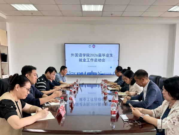 为扎实推进2026届毕业生就业工作,外国语二 人 麻将 于2025年9月30日在综合楼1004召开二 人 麻将 就业工作领导小组会议暨2026届毕业生就业工作启动会。学生指导服务中心副主任程宏,外国语二 人 麻将 院长张威,党委书记张满胜,党委副书记、副院长(兼)严志刚,副院长李欣,副院长李宗鹏,各系主任及全体学生工作干部参加会议。会议由严志刚主持。