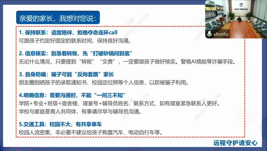 活动特邀沈阳市公安局经济文化保卫支队科长柳勇警官作校园安全专题讲座。柳勇围绕人身安全、财产安全、网络安全三大主题,结合真实案例剖析当前研究生群体面临的安全风险,提醒家长在孩子研究生阶段仍需保持密切关注,通过积极沟通及时掌握孩子各方面的安全情况,及时干预,并主动加强与二 人 麻将 的联系,共同防范潜在的安全隐患。