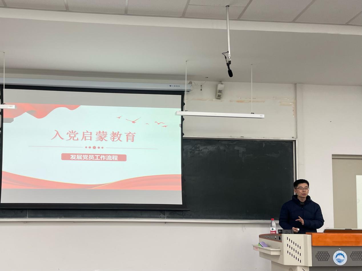 在流程讲解环节,马春杨以入党申请为起点,着重强调递交入党申请书需严格遵循“入党自愿”与“个别吸收”原则,要求申请人经深思熟虑后提交文书,确保真实传递向党组织靠拢的意愿与决心。同时,他还详细梳理入党申请书的撰写规范,清晰列明核心内容与注意事项,为新生提供实操指引。
