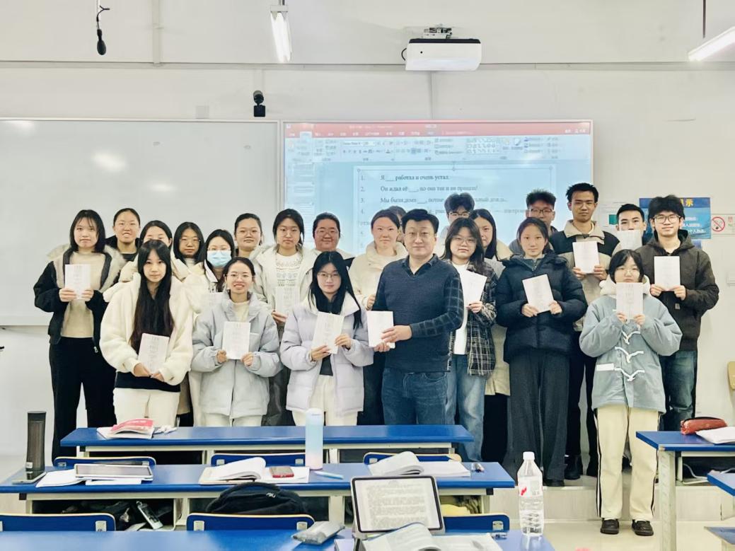 赠书仪式在同学们中间引发了热烈而深刻的反响。大家普遍认为,班导师们精心挑选的书籍,不仅是一次知识的馈赠,更是一把开启智慧、照亮前路的钥匙,让同学们在阅读中深刻体会到专业的魅力、成长的责任与人生的价值。俄语2301班全体同学在收到《俄罗斯文学人生课》后表示,聆听老师将厚重的俄罗斯文学与鲜活的人生智慧相联结,仿佛推开一扇通往灵魂深处的窗。让同学们领悟到专业精进与生命成长本是一体。此次仪式,不仅是知识的传递,更是一次宝贵的精神启迪,感念之情,铭记于心。日语2401班弓利涛同学在班导师所赠《你想活出怎样的人生》的阅读体验中领悟到"无论时代如何困难残酷,都要活得像一个真正的人"这不仅是书的信念,更是导师寄予同学们的期许。英语2501班褚伊励娜同学从《牧羊少年的奇幻之旅》体会到追寻梦想是人生的核心意义,当我们踏上追梦之路,整个宇宙都会助力。它不仅仅是一个故事,更是一个充满象征与寓意的寓言。德语2101李佳旭同学也在班导师所赠《悉达多》的书籍中如同开启了一场关于“成为自己”的精神远征一般,领悟到让自我实现的路径在坚守与觉知中将会愈发清晰,最终在语言与精神的双重成长中,活出独属于自己的饱满人生。