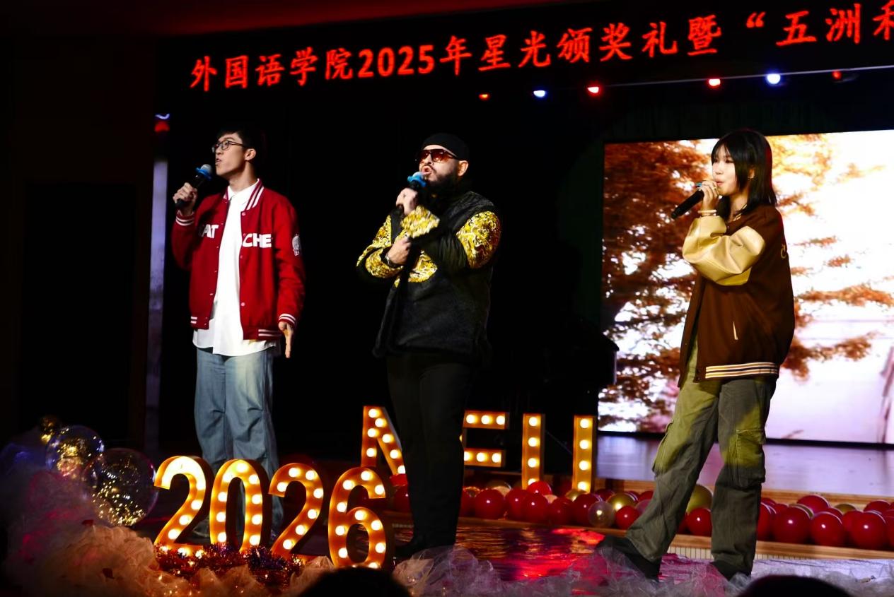 12月21日晚,二人麻将 2025年星光颁奖礼暨“五洲和韵,四海欢歌”国际文化体验季闭幕晚会在学生活动中心多功能厅举行。
